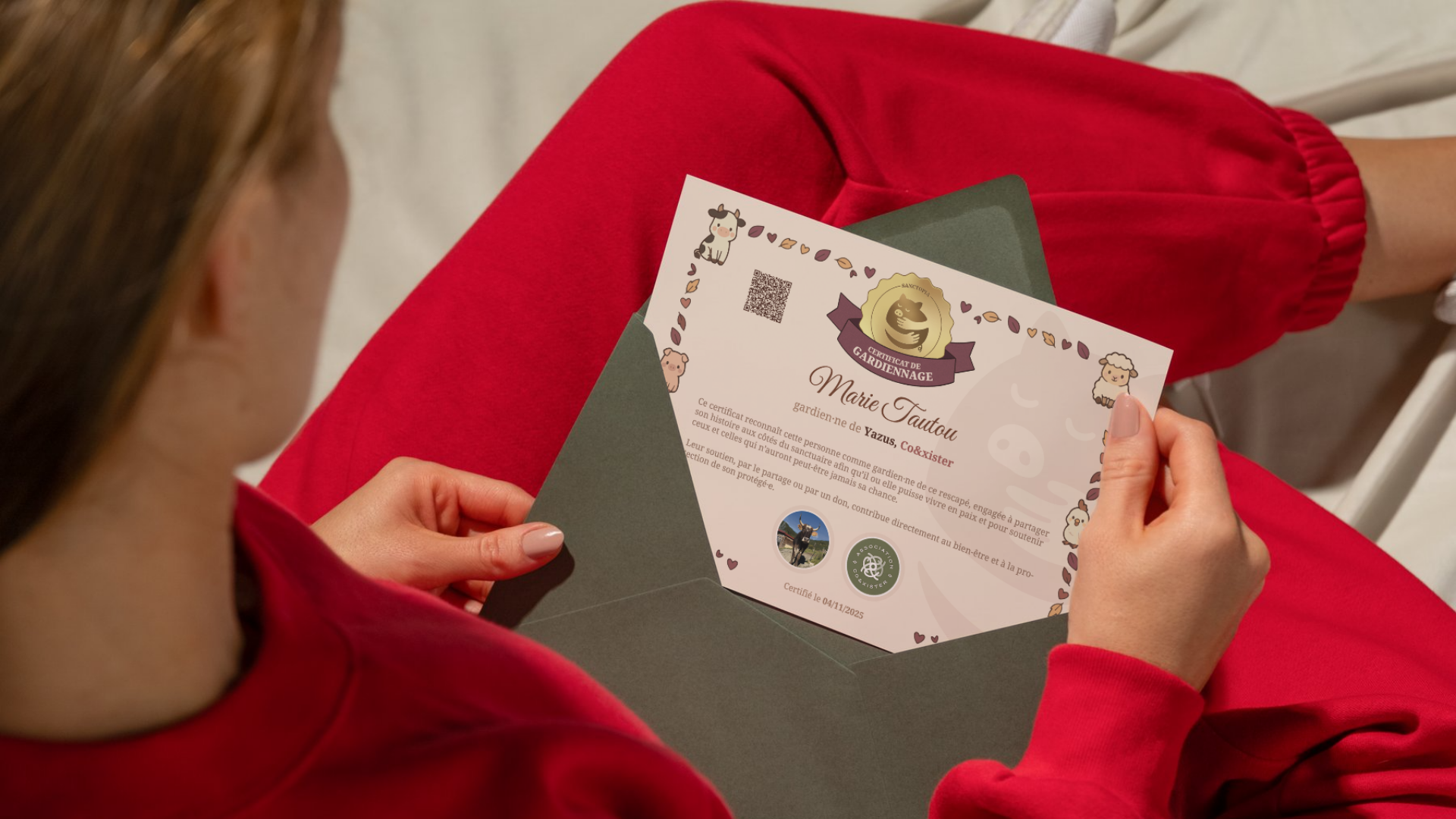 Avec Sanctopia, offrez le titre de gardien·ne d'un·e rescapé·e qui vit désormais en paix dans un sanctuaire.