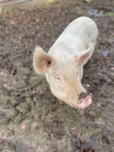 Poupig est une petite truie est très sociable, elle adore les câlins et les grattouilles. Malgré son petit gabarit (mais elle a a bien grandit depuis son arrivée) elle a su s'imposer face à Glaz et Buzhug. Championne de saut sur ses pattes arrières quand elle a faim et qu'elle nous voit arriver avec le seau. Un peu maniaque, elle va arranger son lit (de manière extrêmement chou) dans la seconde où on vient remettre de la paille dans la cabane.