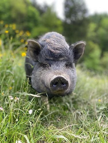 Très craintive au départ, Ondée nous a depuis offert une confiance inconditionnelle, mais comme la majorité des cochons nains, elle ne laisse approcher que les personnes qu'elle connaît bien. En mère protectrice, elle sait aussi faire fuir les animaux qui s'approcheraient trop près de son clan.